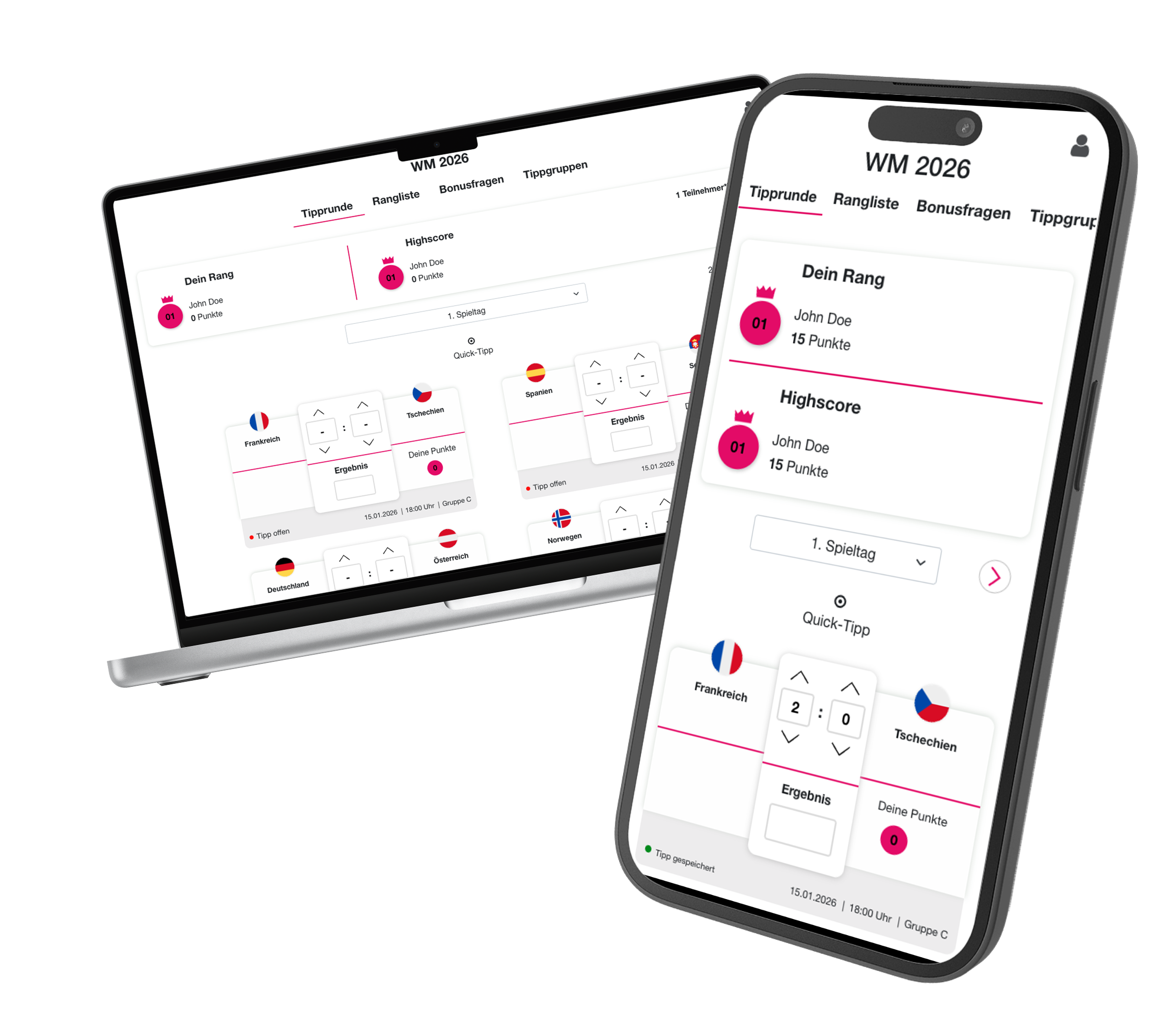 Für die Fußball-WM 2026 stellen wir Ihnen das Tippspiel-Plugin als Software-as-a-Service für drei Monate (voraussichtlich vom 15.05.2026 bis 14.08.2026) bereit. Unser Angebot umfasst: