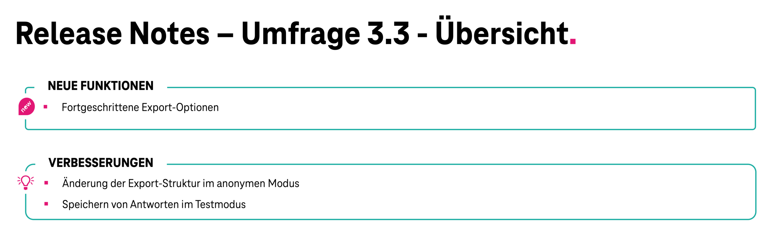Wir haben den Export der Umfrageergebnisse im anonymen Modus weiter optimiert, damit Sie Ihre Daten noch einfacher und übersichtlicher auswerten können. Bisher wurden alle Antworten zu einer Frage in einer einzigen Zeile zusammengefasst, was eine detaillierte Analyse erschwerte.