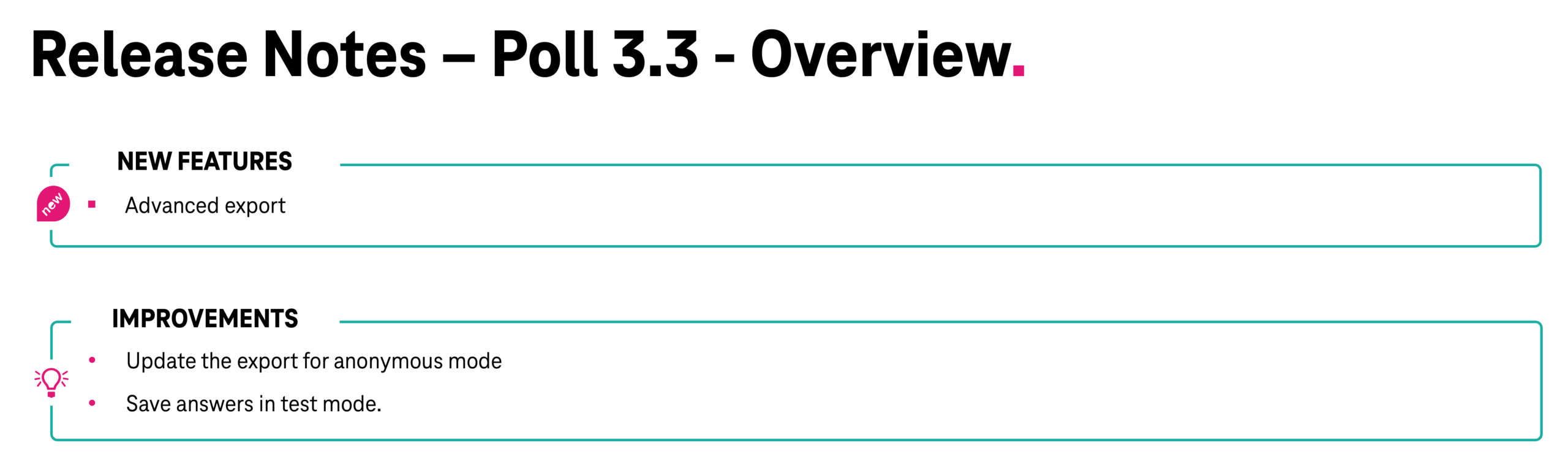 Whether it’s a pulse survey or a large employee survey, what matters is what you do with the results. The new release 3.3 of our poll plugin helps you do just that. With enhanced exports, clearly structured data and realistic test runs, you gain insights that really help you move forward – and support your organisation in listening and taking action.