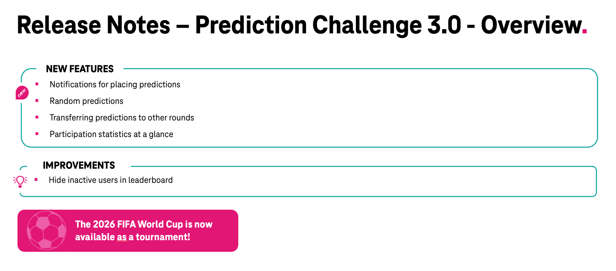This way, you ensure a higher participation in the prediction challenge and facilitate internal communication around the match days.