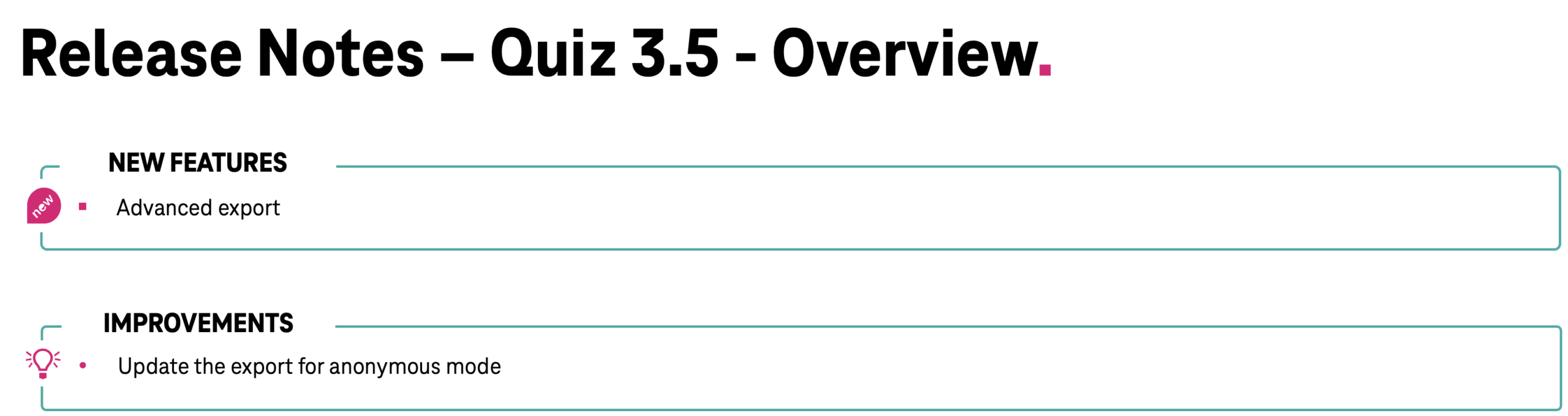 With release 3.5, we are introducing a new export structure based on non-anonymous mode – naturally still without personal data. In future, each line will represent one session, i.e. one complete quiz participation, including score and duration. This ensures a clearer, analysable data structure, facilitates further processing in Excel or BI tools, and forms the basis for future reporting improvements.